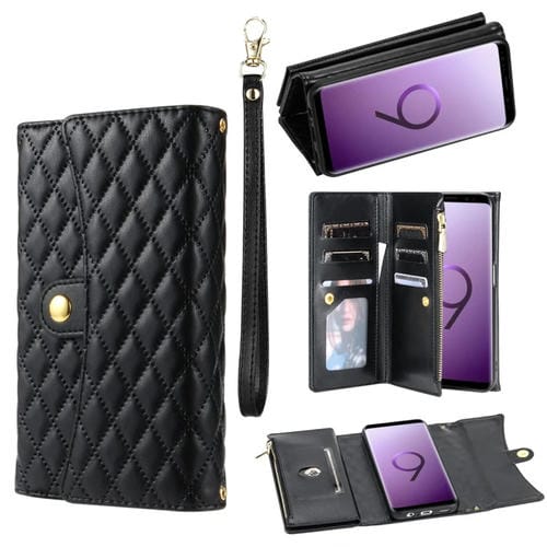 Estuche para Teléfono Samsung Galaxy S9 Cuero Rómbico con Billetera MultiTarjeta y Cremallera (Negro)