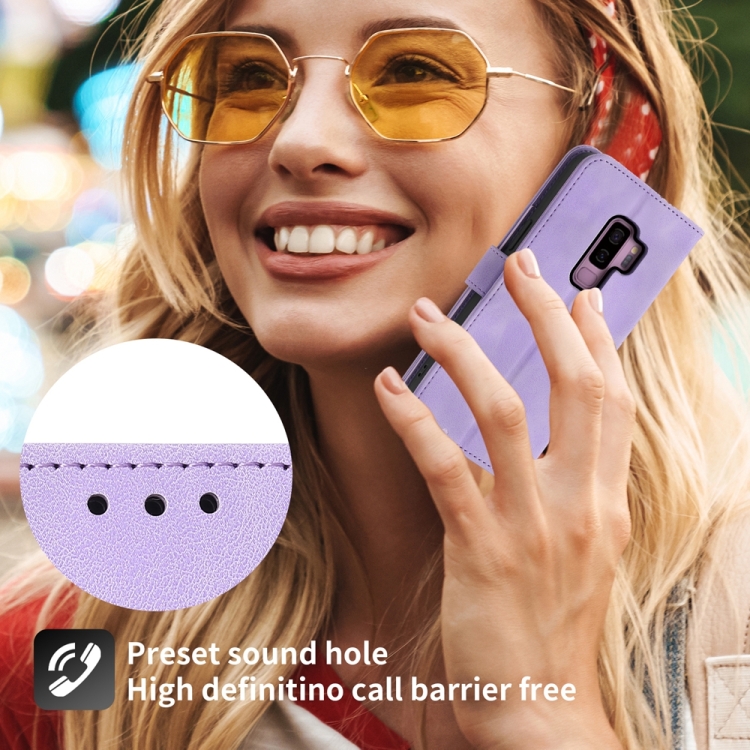 Funda de Cuero para Samsung Galaxy S9 con Billetera en Relieve y Flores con Sensación de Piel (Púrpura)