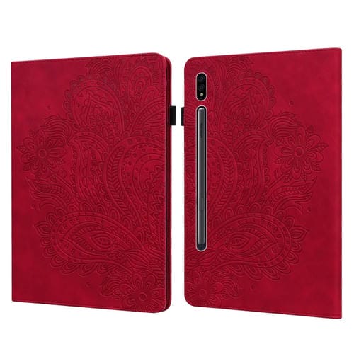 Funda para Tablet Samsung Galaxy Tab S8 Tab S7 T875 TPU y PU Cuero Horizontal Flip con Soporte y Ranuras para Tarjetas (Rojo)
