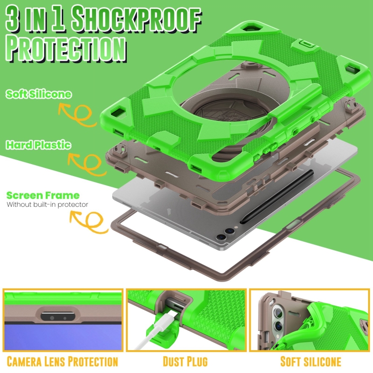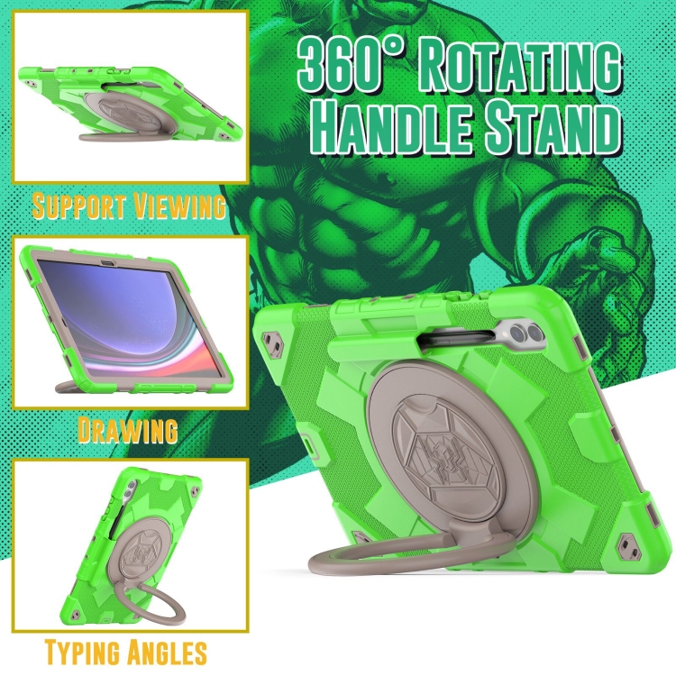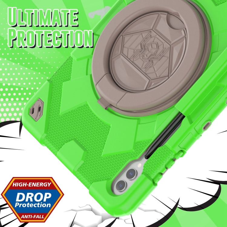Funda para Tablet Samsung Galaxy Tab S9 Spider Rotation Handle Híbrida Silicona PC (Gris Verde)