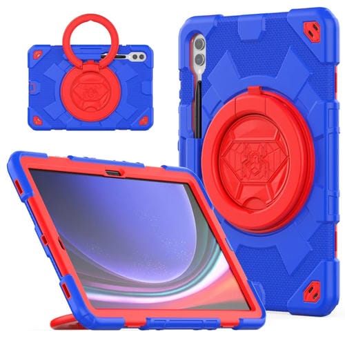 Pour Samsung Galaxy Tab S9 + Spider Rotation Poignée PC Silicone Hybrid Tablet Case (Rouge Bleu)