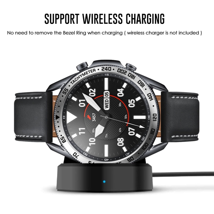 Anillo de Bisel de Acero para Samsung Galaxy Watch 3 45mm Versión E (Plata Letra Negra)