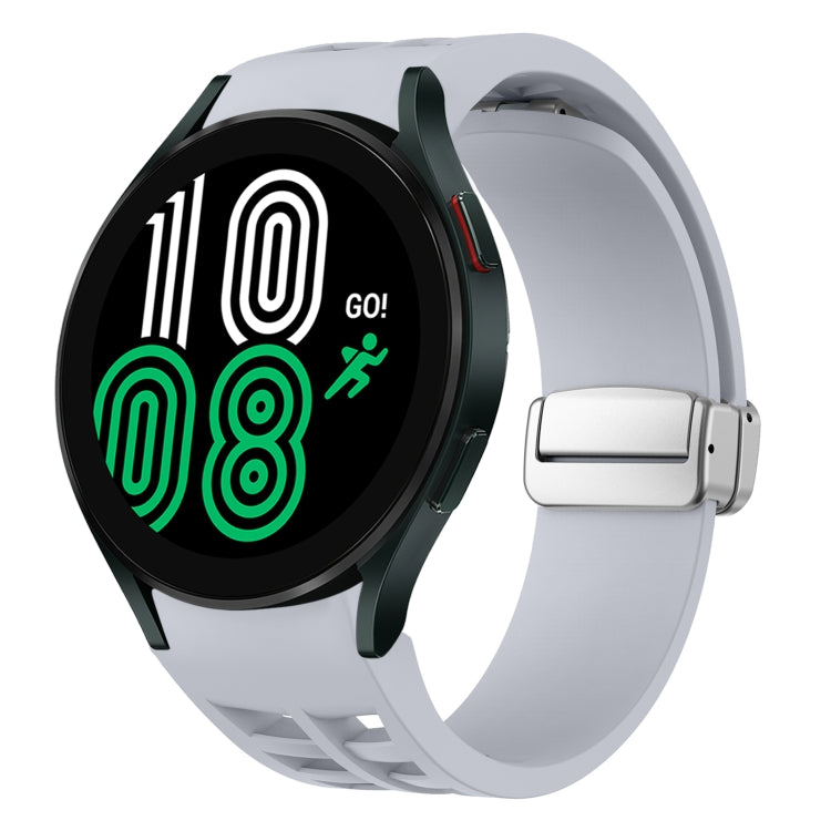 Pour Samsung Galaxy Watch 4 40/44 mm Richard Silicone Watch Band avec boucle argentée pliante magnétique (gris clair)