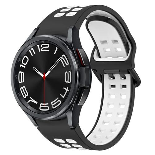 Banda de Reloj de Silicona para Samsung Galaxy Watch 6 Classic 47mm Transpirable (Negro + Blanco)