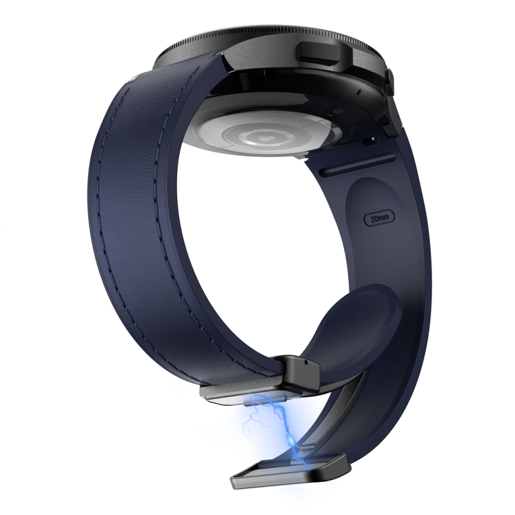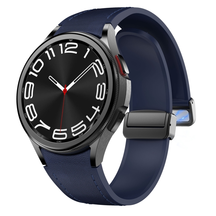 Correa de Reloj para Samsung Galaxy Watch 6 Silicona y Cuero con Hebilla Magnética (Azul Medianoche)