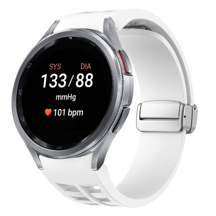 Correa de Reloj silicona para Samsung Galaxy Watch 7 40/44mm Richard con hebilla plateada plegable magnética (Blanco)