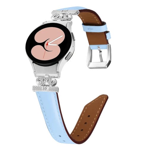 Correa de Cuero para Samsung Galaxy Watch6/6 en Forma de D con Corona Clásica (Azul Plateado)