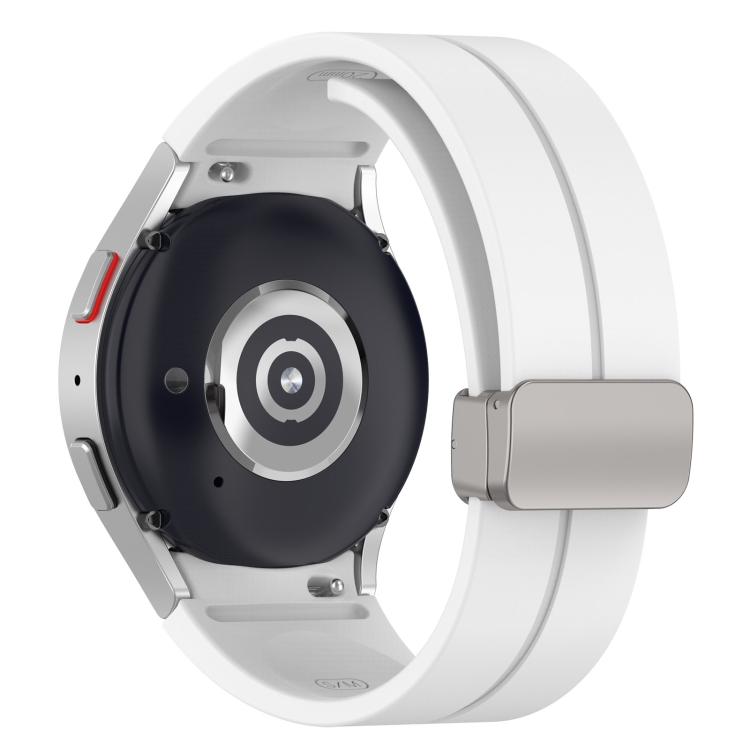 Correa de Silicona para Samsung Galaxy Watch7 40/44mm con Hebilla Plateada Plegable Magnética (Blanco)