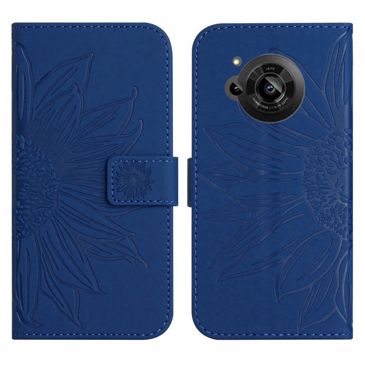 Funda de Cuero Flip para Sharp Aquos R7 P7 Skin Feel Sun Flower con Cordón (Azul Oscuro)