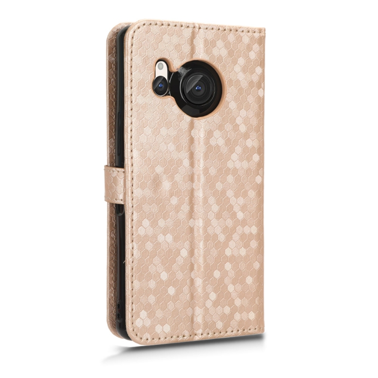 Funda de Cuero para Sharp Aquos R8 Honeycomb Dot Texture para Teléfono (Oro)