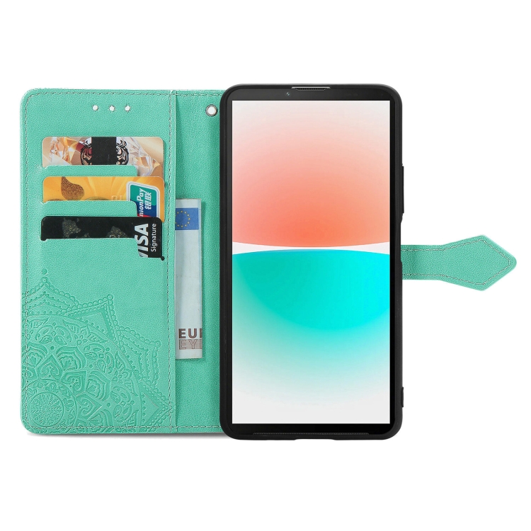 Funda de Cuero para Sharp Aquos R8 Mandala Flower en Relieve para Teléfono (Verde)