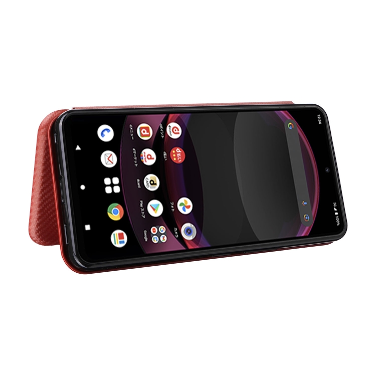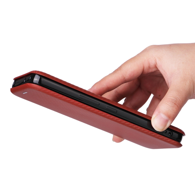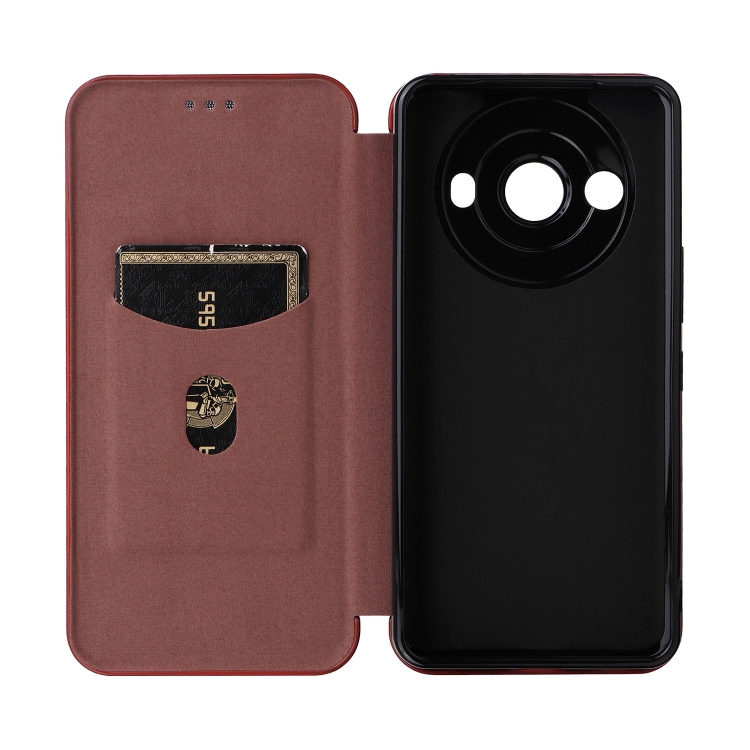 Funda de Cuero para Sharp Aquos R8 Pro con Textura de Fibra de Carbono (Marrón)