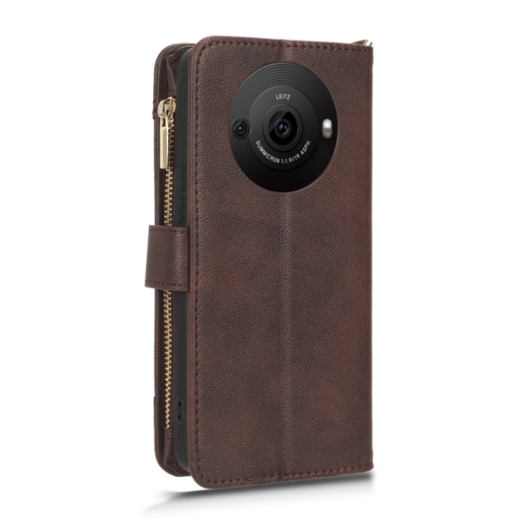 Funda de Cuero para Sharp Aquos R8 Pro con Textura Litchi y Cremallera (Marrón)