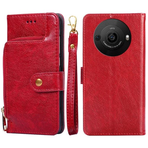 Funda de Cuero con Cremallera para Sharp Aquos R8 Pro Sh-51D (Rojo)