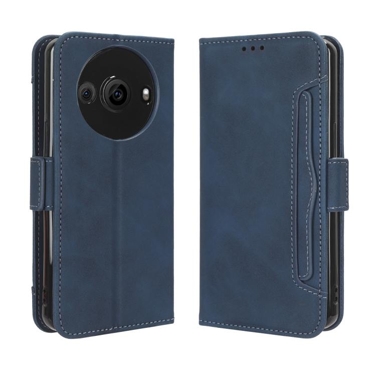 Funda de Cuero para Sharp Aquos R8 Pro con Textura Skin Feel, Ranuras para Tarjetas (Azul)