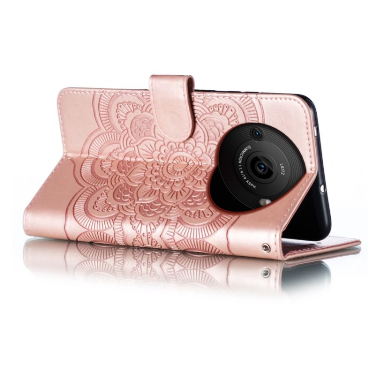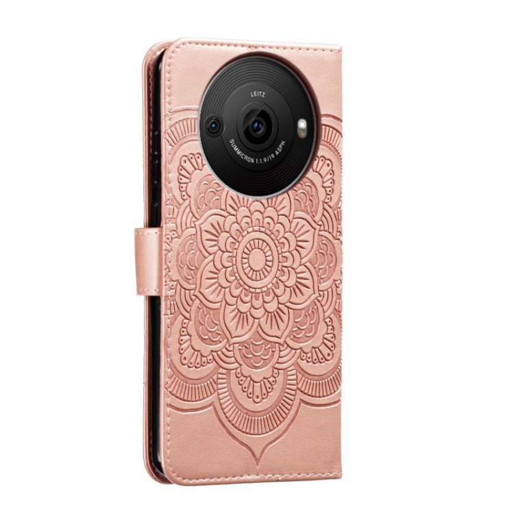 Funda de Cuero para Sharp Aquos R8 Pro con Patrón Sun Mandala en Relieve (Oro Rosa)