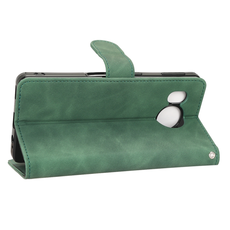Funda para Sharp Aquos Sense 7 Plus Flip Magnética de Cuero Skin Feel (Verde)