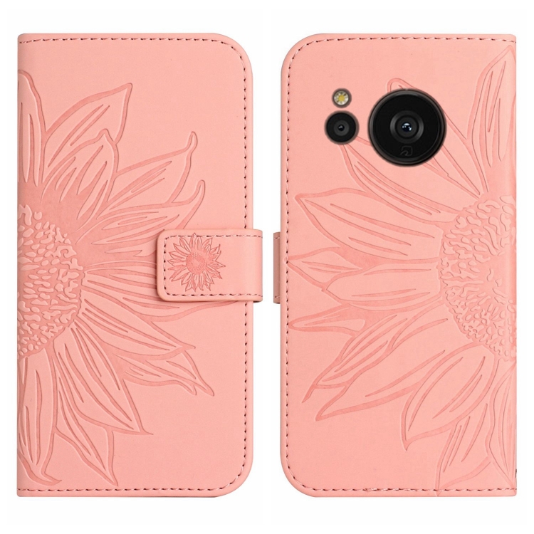 Funda Flip de Cuero para Sharp Aquos Sense7 Sh-V48 Ht04 con Cordón y Diseño Sun Flower (Rosa)