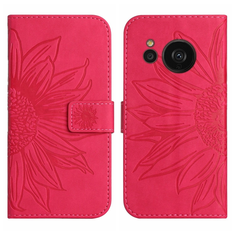 Funda Flip de Cuero para Sharp Aquos Sense7 Sh-V48 Ht04 con Cordón y Diseño Sun Flower (Rose Red)