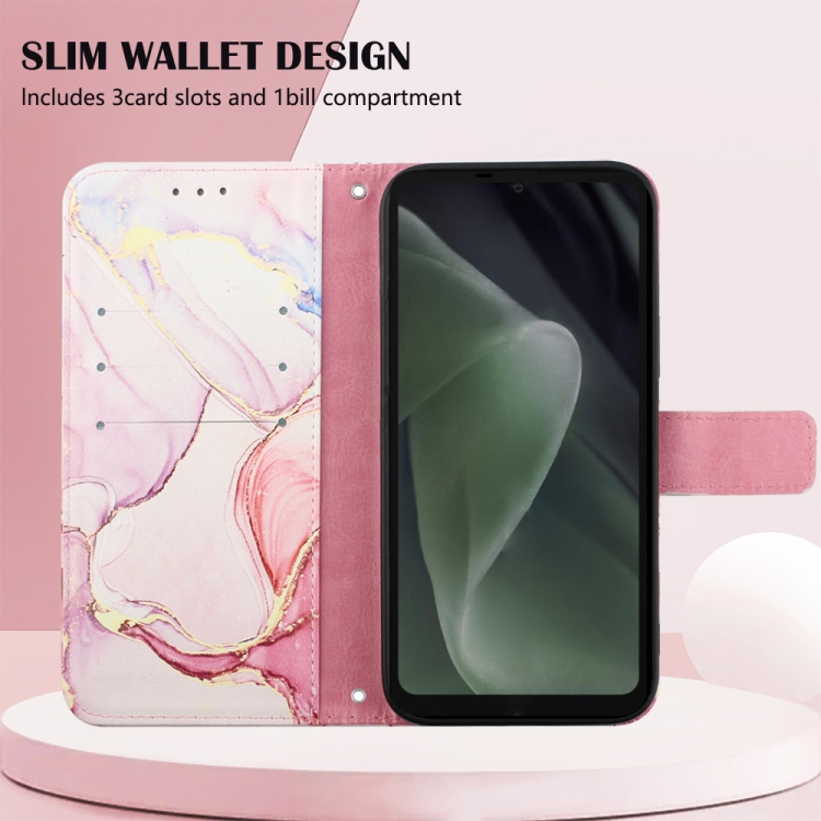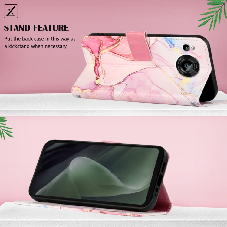 Funda Flip de Cuero para Sharp Aquos Sense7 Sh-V48 Pt003 con Patrón de Mármol (Oro Rosa)