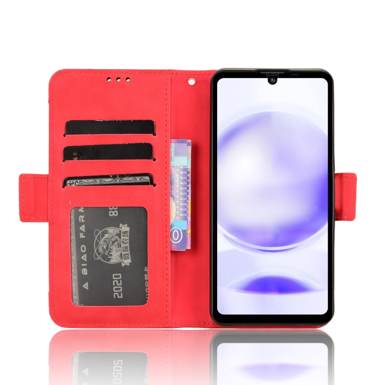 Funda de Cuero para Sharp Aquos Sense8 Skin Feel con Textura de Becerro y Ranuras para Tarjetas (Rojo)