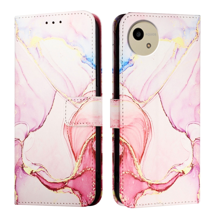 Funda de Cuero para Sharp Aquos Wish 4 Sh-52E Pt003 con Tapa y Patrón de Mármol (Oro Rosa)