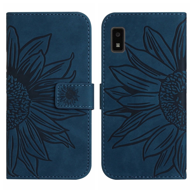 Funda Flip de Cuero para Sharp Aquos Wish con Patrón Sun Flower y Cordón (Azul Tinta)