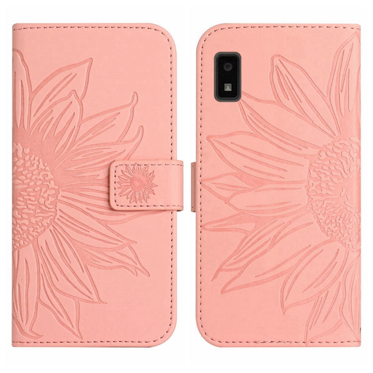 Funda Flip de Cuero para Sharp Aquos Wish con Patrón Sun Flower y Cordón (Rosa)