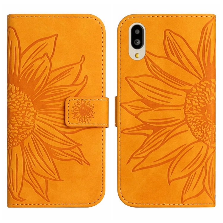 Funda Flip de Cuero para Sharp Simple Sumaho 6 con Cordón y Diseño Sun Flower (Amarillo)