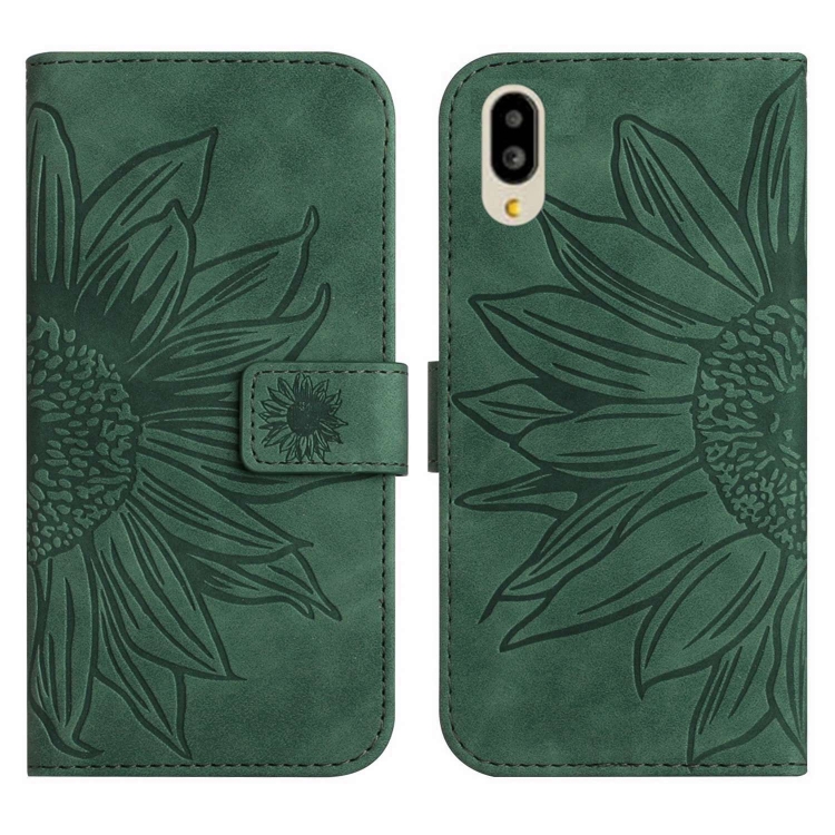 Funda Flip de Cuero para Sharp Simple Sumaho 6 con Cordón y Diseño Sun Flower (Verde)