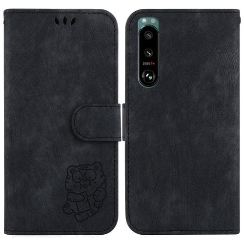 Funda de Cuero para Sony Xperia 5 III con Relieve Little Tiger (Negro)