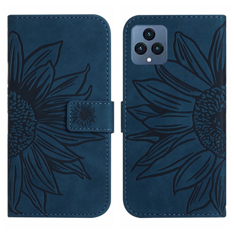 Funda de Cuero con Tapa para T-Mobile Revvl 6 5G con Cordón y Diseño Sun Flower (Azul Tinta)