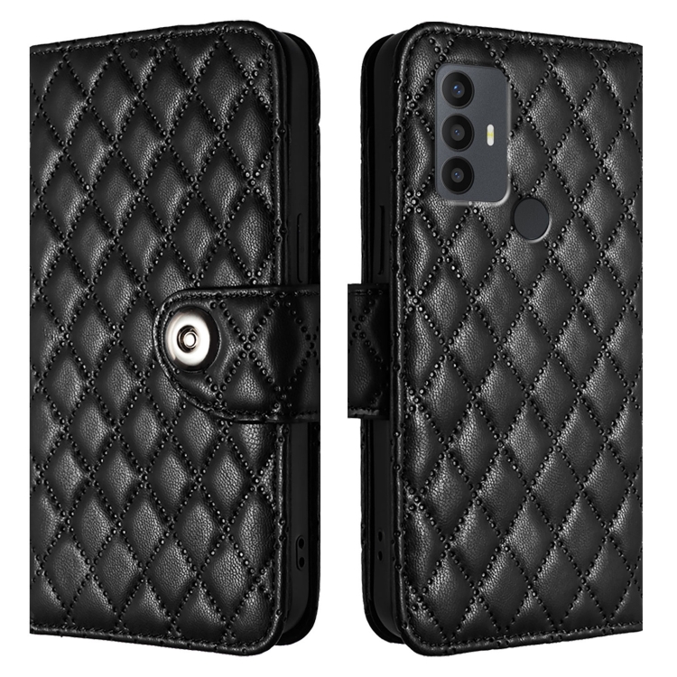 Funda para TCL 30 Se de Cuero con Tapa Textura Rómbica y Cordón (Negro)