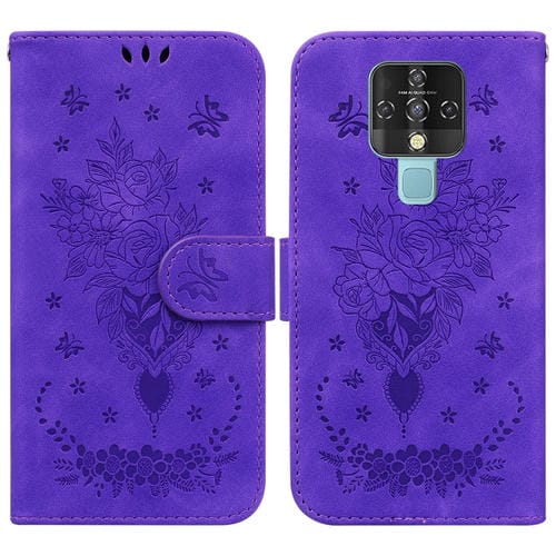 Funda de Cuero para Tecno Camon 16 con Relieve de Mariposa (Púrpura)