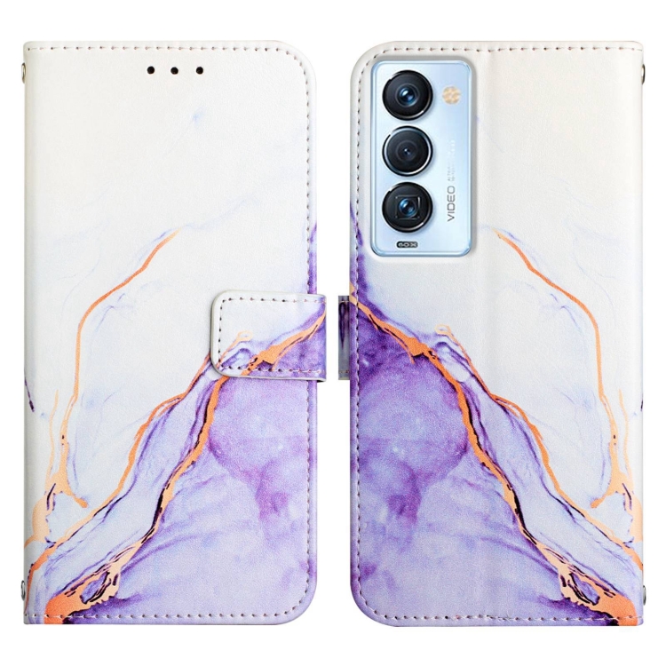 Funda de Cuero para Tecno Camon 18 Pt003 con Patrón de Mármol (Blanco Purple)