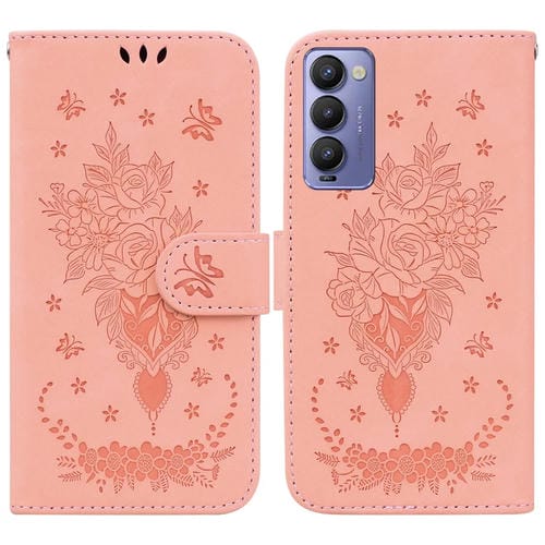 Funda para Tecno Camon 18P Butterfly Rose Foothip en Relieve de Cuero (Rosa)