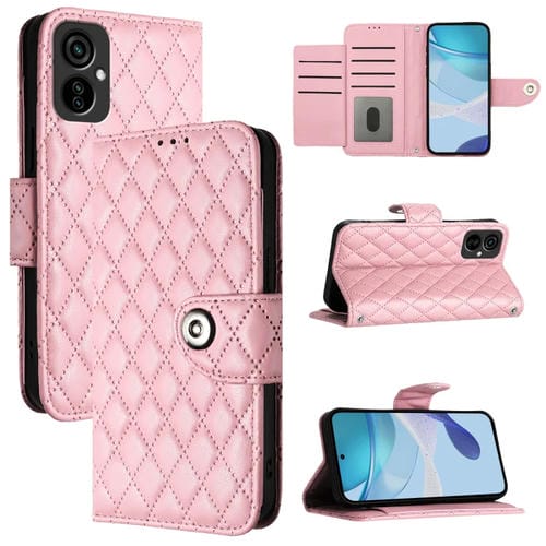 Funda de Cuero para Tecno Camon 19 Neo con Tapa Textura Rombal y Cordón (Rosa)