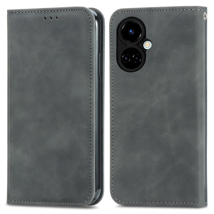 Funda Magnética de Cuero para Tecno Camon 19 Retro Skin Feel (Gris)