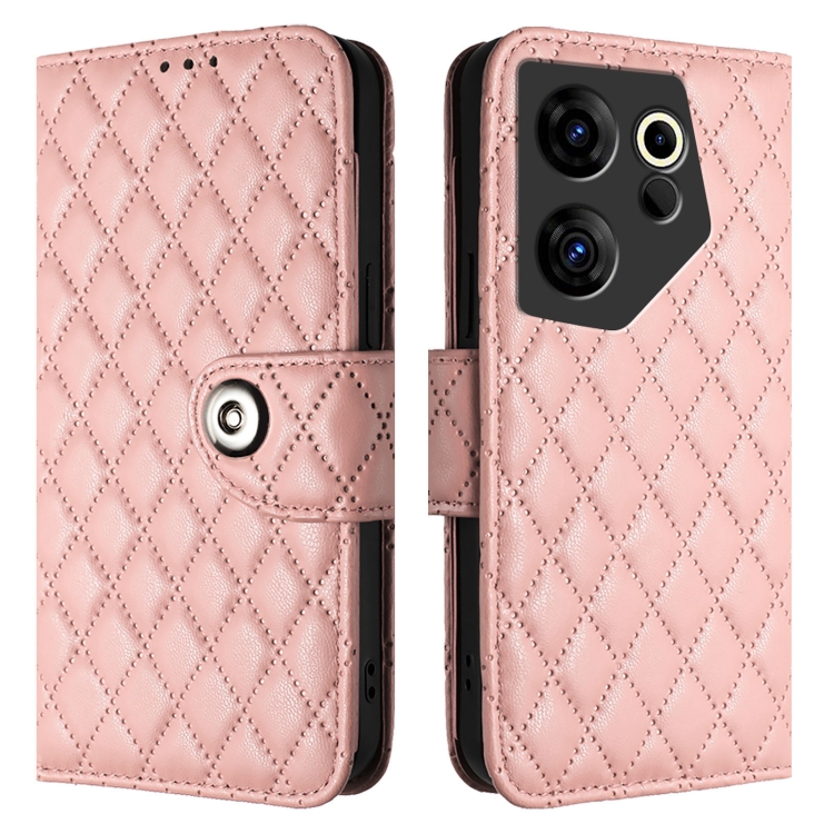 Funda de Cuero para Tecno Camon 20 Premier 5G con Tapa, Textura Romboidal y Cordón (Rosa Coral)