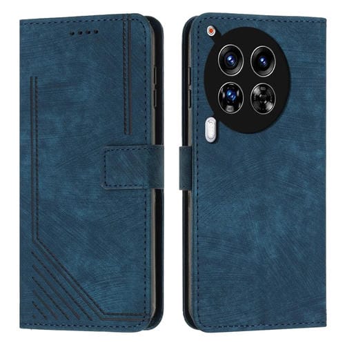Funda de Cuero para Tecno Camon 30 Premier Skin Feel con Patrón de Rayas y Cordón Largo (Azul)