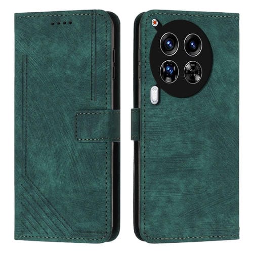 Funda de Cuero para Tecno Camon 30 Premier Skin Feel con Patrón de Rayas y Cordón Largo (Verde)