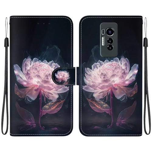Funda de Cuero para Tecno Phantom X con Dibujo Coloreado y Textura de Cristal (Peonía Púrpura)