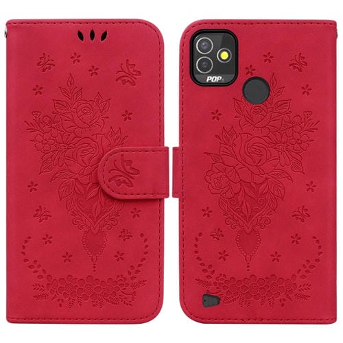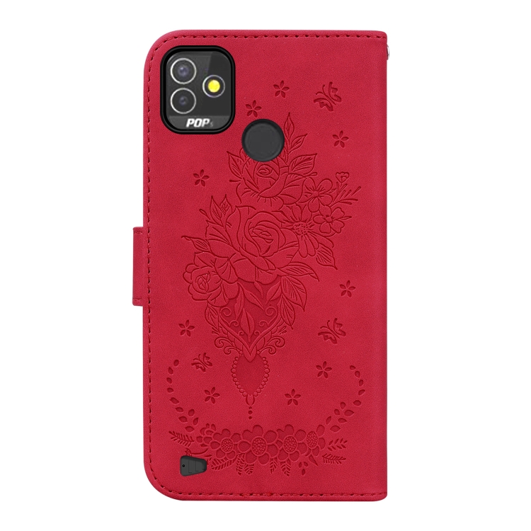 Funda para Tecno Pop 5P Butterfly Rose Foothip en Relieve de Cuero (Rojo)