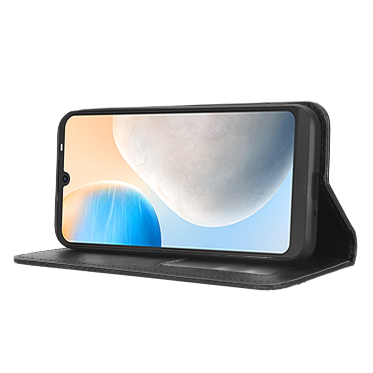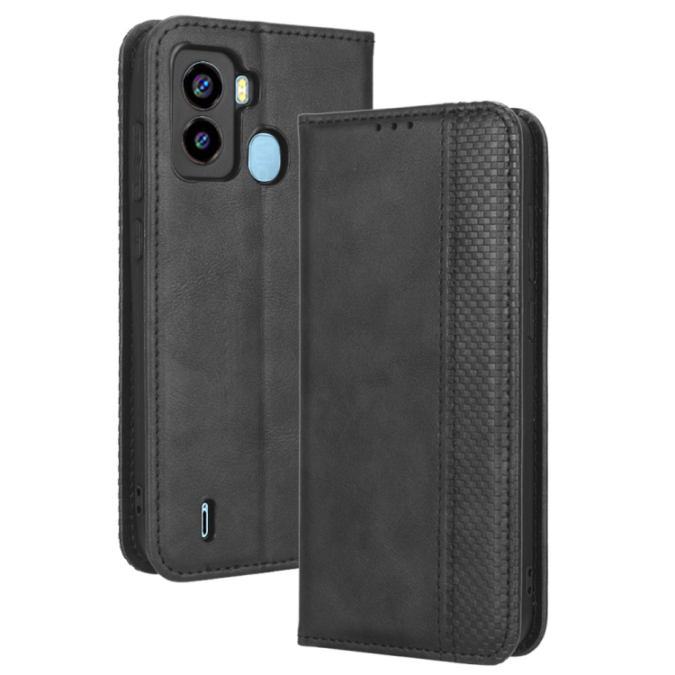 Funda para Tecno Pop 6 Be7 con Hebilla Magnética y Textura Retro de Cuero (Negro)