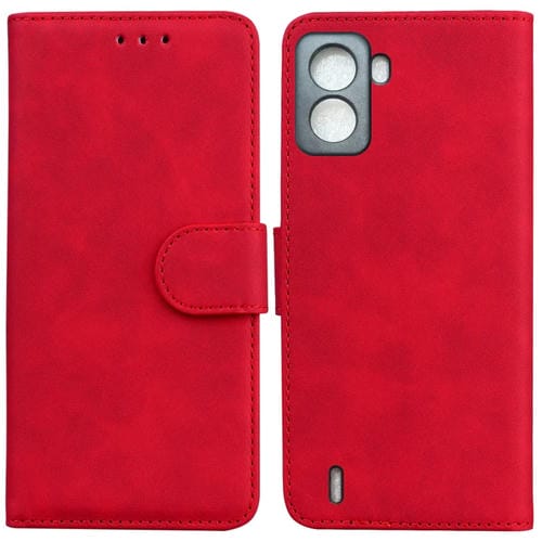Funda de Cuero Flip para Tecno Pop 6 Skin Feel Pure Color (Rojo)