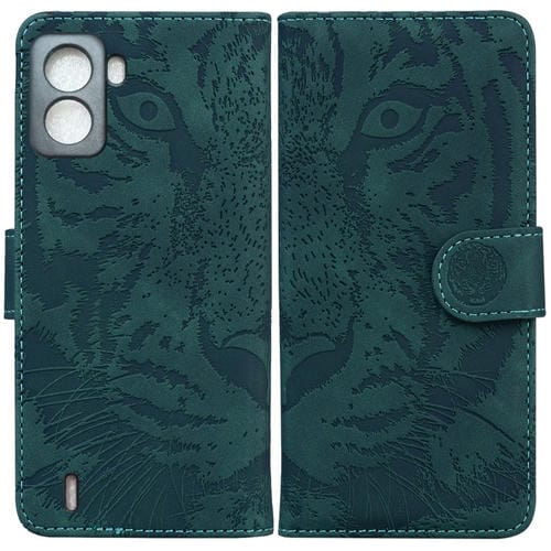 Funda de Cuero con Tapa Horizontal para Tecno Pop 6 no Fingerprints Tiger Embossing Pattern (Verde)