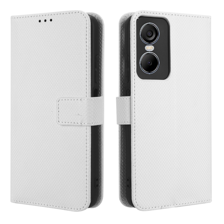 Funda de Cuero para Tecno Pop 6 Pro Be8 con Textura de Diamante (Blanco)