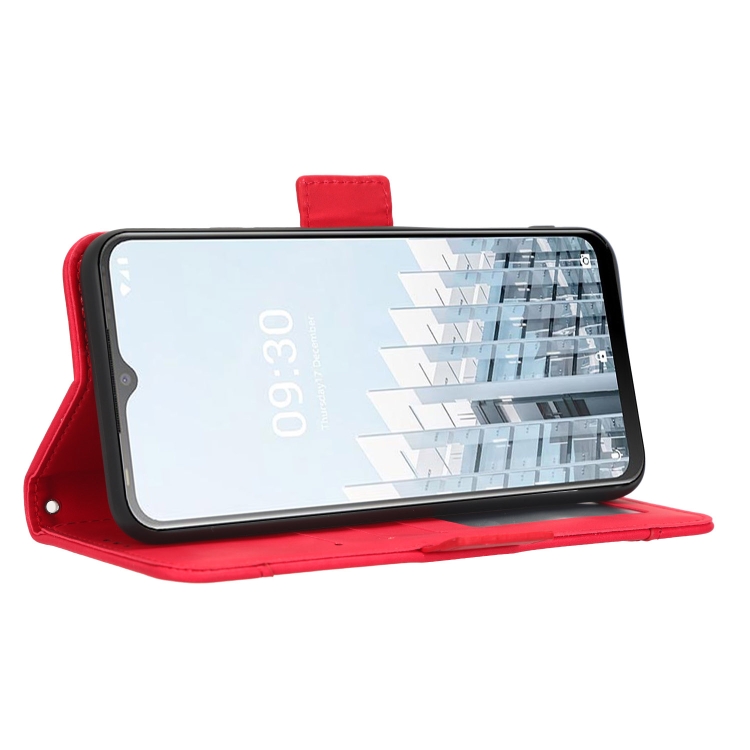 Funda de Cuero para Tecno Pop 6 Pro Be8 con Textura Becerro y Ranuras para Tarjetas (Rojo)