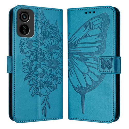 Funda para Tecno Pop 6C y Itel A18 de Cuero con Mariposa en Relieve (Azul)