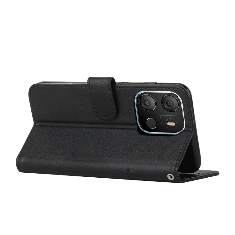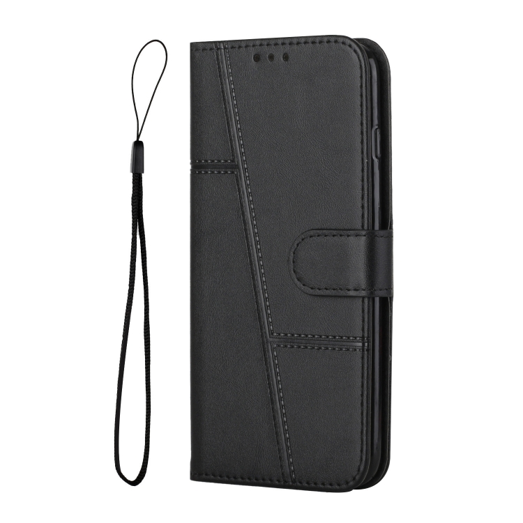 Funda de Cuero para Tecno Pop 7 con Costura y Hebilla (Negro)
